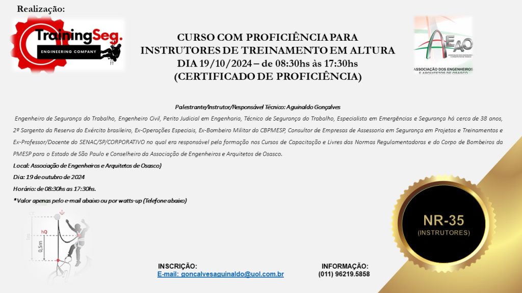 - Conhecer toda e qualquer atividade através de treinamentos inerentes a sua função versus risco, com atendimento a legislação vigente garantindo sua capacitação e qualificação profissional.